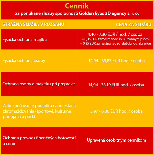 Ceny uvedené v cenníkoch sú orientačné, je možné ich meniť na základe dohody s klientom.