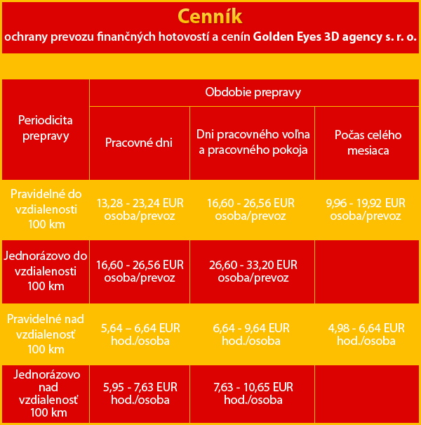 Pri použití služobného motorového vozidla sa účtuje k cene služby sadzba 0,45 EUR/km.